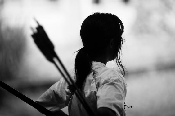 Práctica de tiro con arco en los terrenos exteriores de la academia.